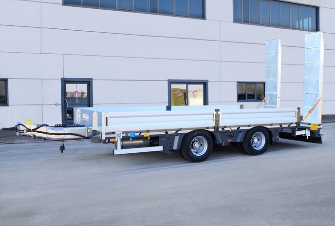 Przyczepa niskopodwoziowa do transportu małych maszyn budowlanych, maszyn rolniczych, pojazdów dźwigowych i części przemysłowych.